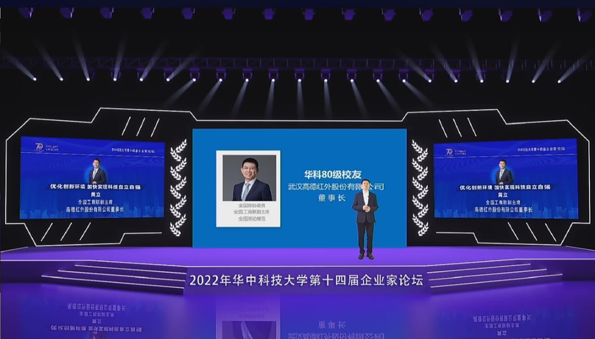 10月6日是华中科大建校70周年的纪念日,在当天举行的校庆系列活动第十四届企业家论坛上,华科80级校友、全国工商联副主席、武汉高德红外股份有限公司董事长黄立发表主旨演讲,从为什么要干红外、为什么要干军工、为什么要干芯片,解析了高德红外科技创新之路。同时,他从企业的层面,从四个方面分享了对企业推进科技自立自强的研究和思考。