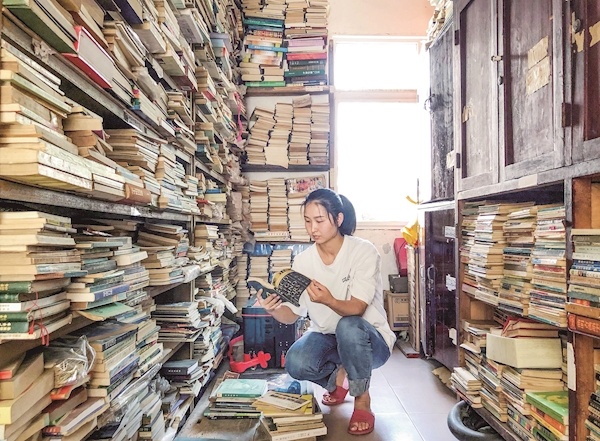 从闹市中走进这家私人图书馆,一楼的两间相邻房屋内,泛黄的图书堆满房间的书架。微风时不时从敞开的小窗钻进来,让房间内弥漫着旧书的霉味。