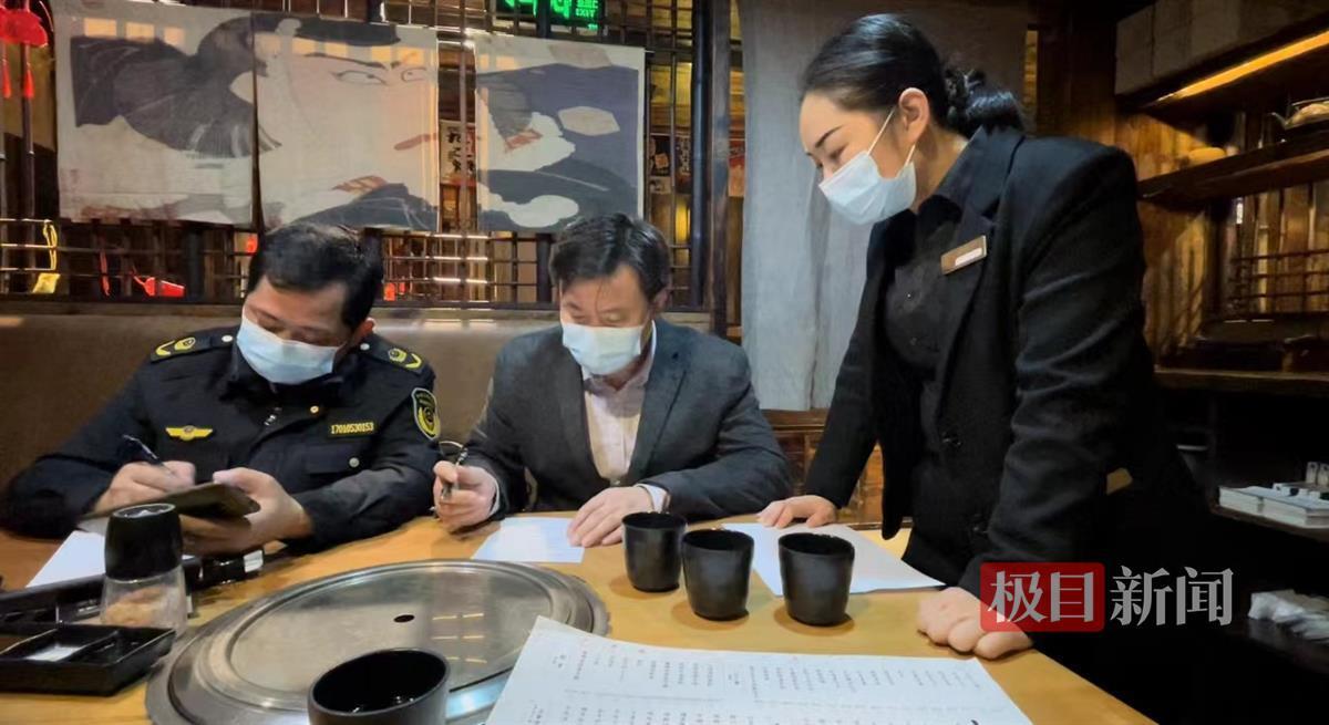 10月8日,武汉市武昌区市场监管局积玉桥所执法人员来到该餐厅检查,现场开具了整改通知书,责令其采用纸制牌公示餐位费价格及内容,做到明码标价。