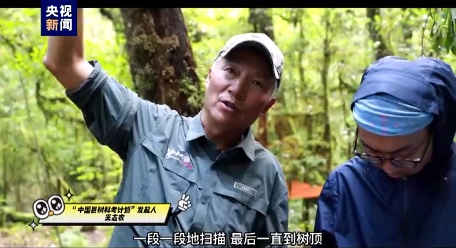 “中国巨树科考计划”发起人 奚志农:用无人机每隔几米拍上至少三张到六张一组照片,一段一段地扫描,最后一直到树顶,最后再用后期把它拼接出来。
