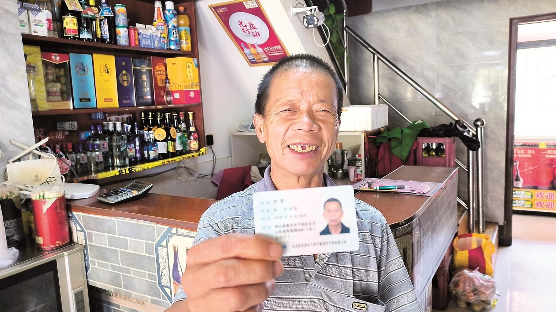 刘安办成了身份证,眼睛笑成一条缝