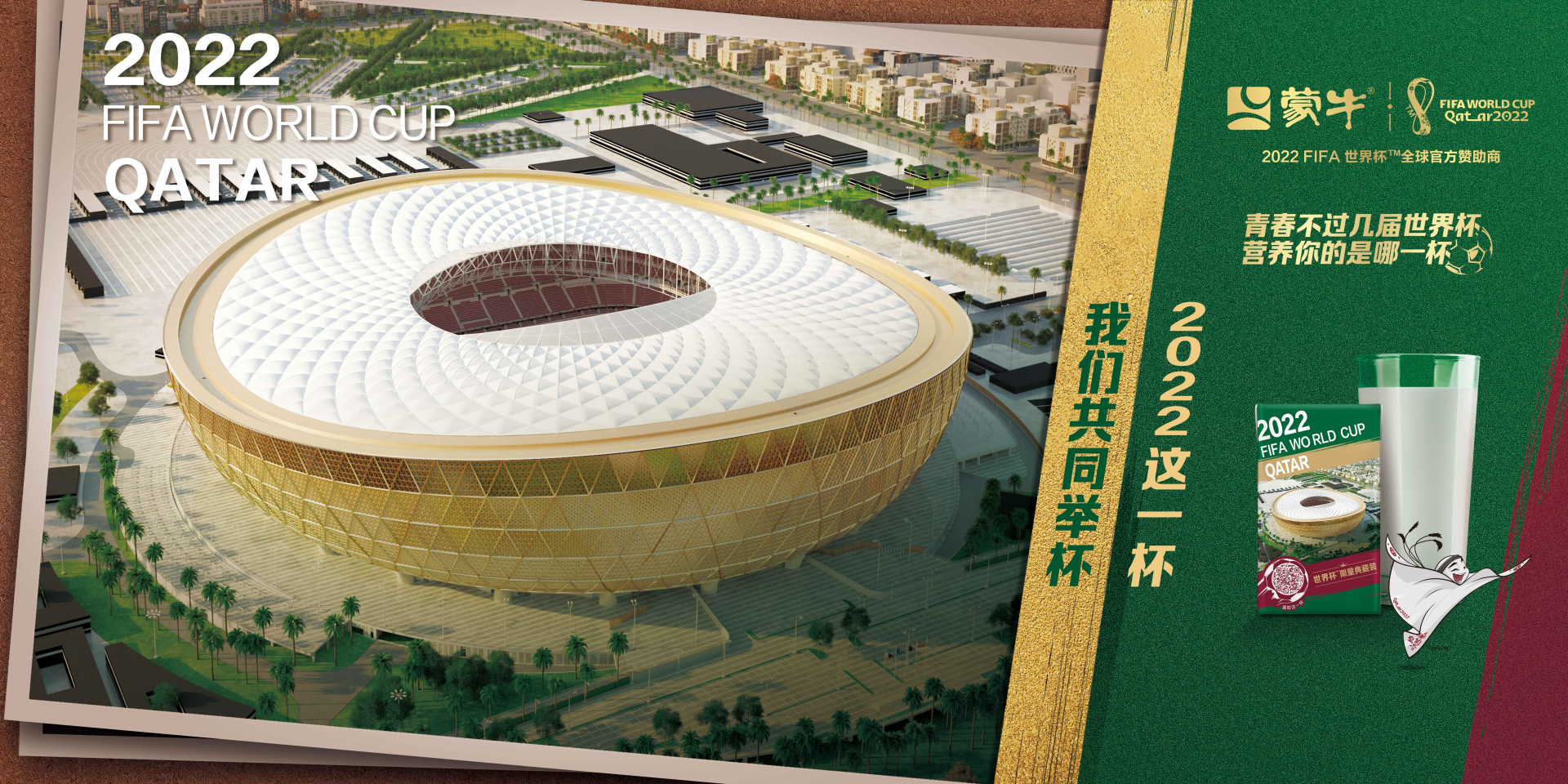 2022年,世界杯又回到亚洲,蒙牛再次成为卡塔尔世界杯的官方合作伙伴,携手两代球王,准备再次在绿茵场拼搏。经济全球化进程加速,我国乳业开始扬帆出海,为中国乳业发展开疆拓土的蒙牛,跟球场上冲锋突刺的运动员一样,最大也最深的期盼就是带领行业走向世界。