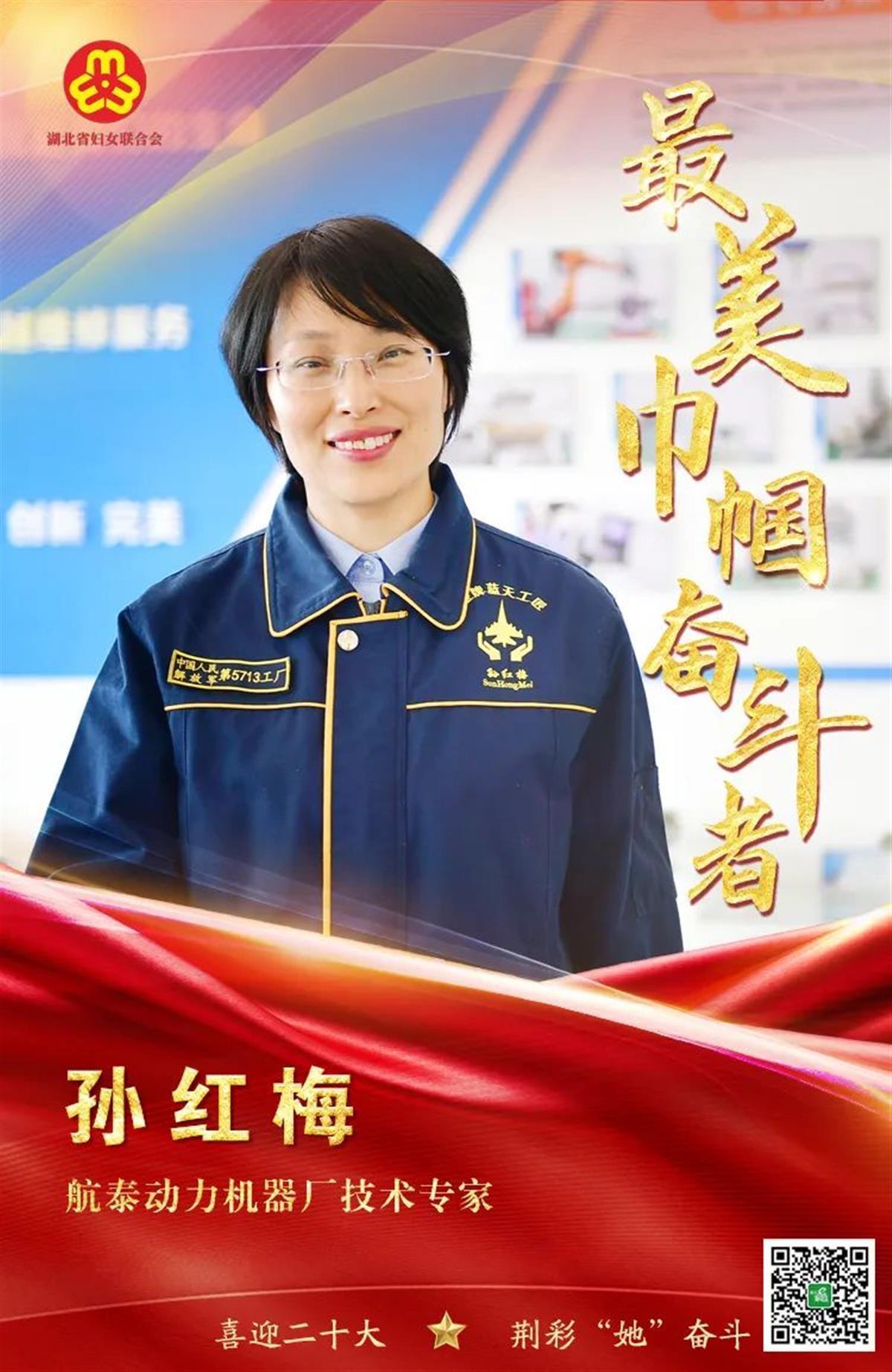 孙红梅,襄阳航泰动力机器厂首席技术专家,先后荣获大国工匠2019年度人物、全国劳动模范、全国道德模范提名奖、全国三八红旗手。
