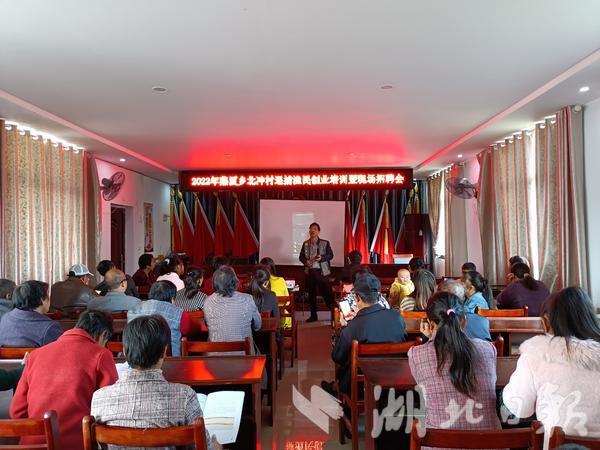 湖北日报客户端讯(通山频道通讯员 汪金明)为进一步巩固禁捕退捕成果,引导退捕渔民转岗再就业、再创业,10月9日,通山县人社局、通山县燕厦乡政府联合通山县越新职业培训学校在燕厦乡北冲村开设“2022年退捕渔民创业培训暨现场招聘会”。