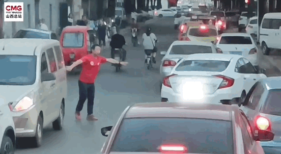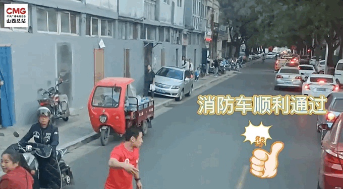 志愿者疏导拥堵车辆、引导应急急救车辆时