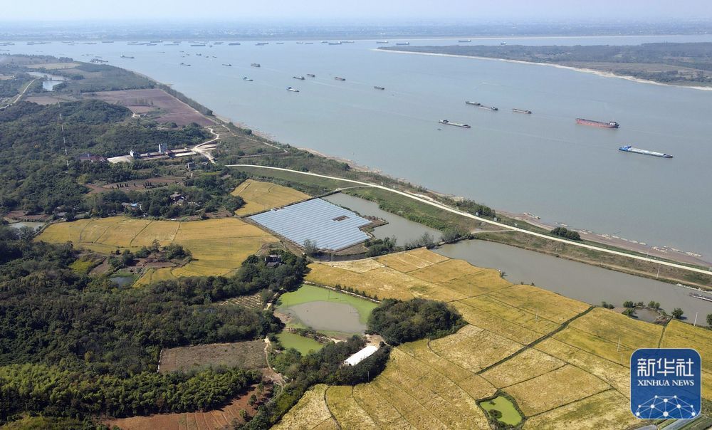 金秋时节,在长江沿岸的安徽省芜湖市繁昌区,大片水稻田陆续迎来丰收,当地农民抢抓晴好天气收割水稻。金黄的稻田、繁忙的长江主航道和田间地头穿梭的收割机,共同组成一幅美丽的江畔秋收图景。