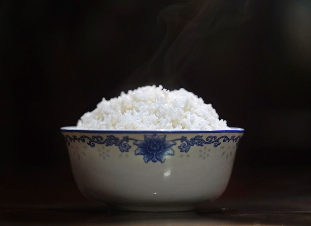 ↑在江西省南昌市一市民家中,一碗香喷喷的米饭端上了餐桌(10月13日摄)。