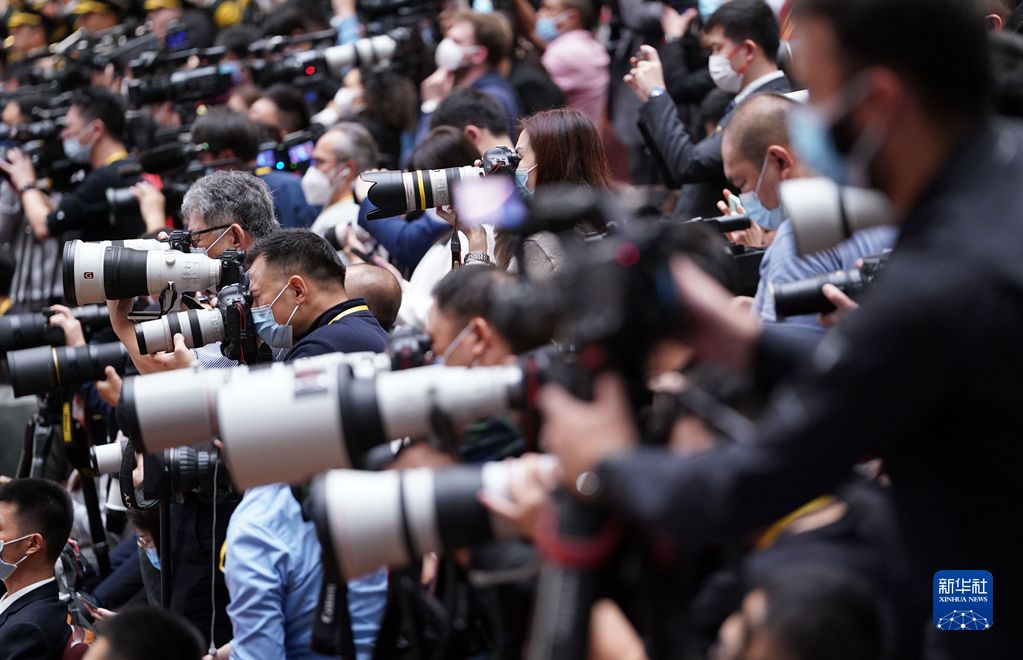 10月16日,中国共产党第二十次全国代表大会在北京人民大会堂隆重开幕。这是记者在采访。
