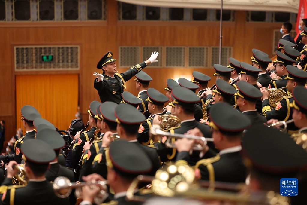 10月16日,中国共产党第二十次全国代表大会在北京人民大会堂隆重开幕。这是军乐团在演奏。