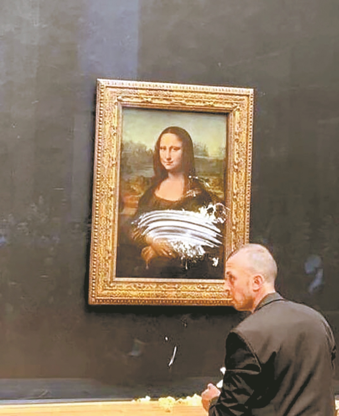 自1804年以来,这幅16世纪文艺复兴时期的画作一直被法国巴黎卢浮宫博物馆收藏。2022年5月30日,一名男子伪装成坐在轮椅上的老妇人,向这幅画扔了一块蛋糕。所幸,这幅画因外面的玻璃保护而完好无损。