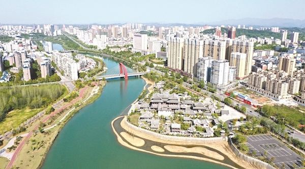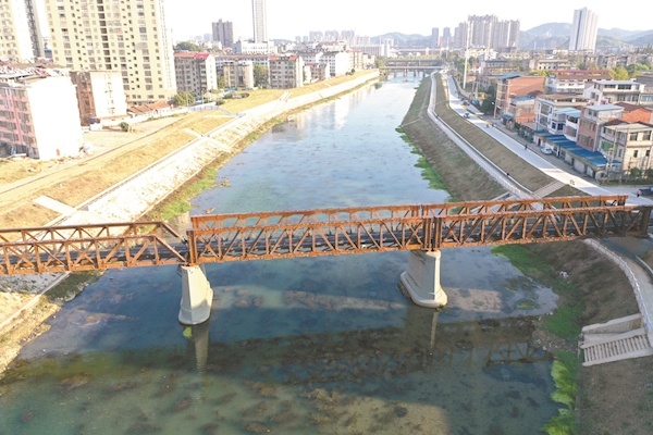百里淦河蜿蜒流过咸宁主城区。 (袁灿 摄)