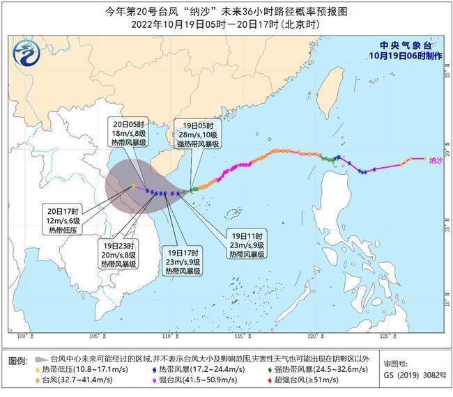 预计,“纳沙”将以每小时15-20公里的速度向偏西方向移动,强度逐渐减弱,今天白天从海南岛南部海面掠过,20日将在北部湾南部海面减弱消散。