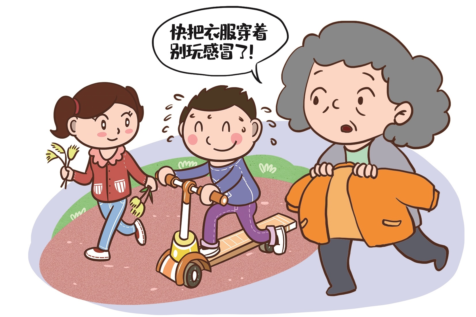 “其实,捂热更容易让孩子感冒。”陈和斌主任解释,孩子天性活泼好动,如果穿得过多,容易在活动后出汗。出汗时再被风一吹,就更容易感冒。