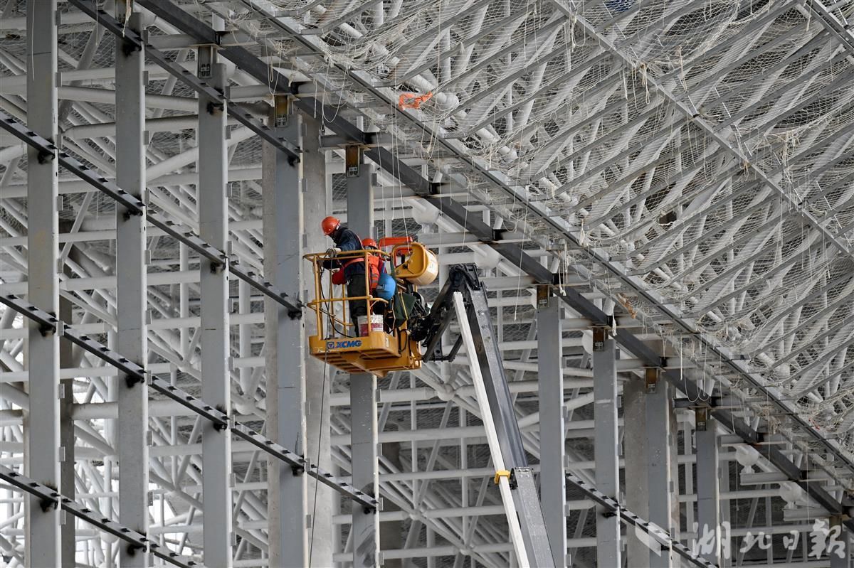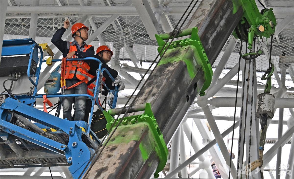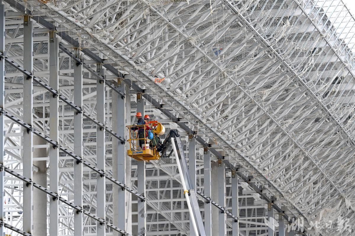 10月24日,宜昌三峡机场T1航站楼改造项目现场,工人正在“凤凰展翅”外墙钢架进行施工。今年6月,随着三峡机场T2航站楼成功建成投入运行后,宜昌三峡机场启动T1航站楼建设改造。