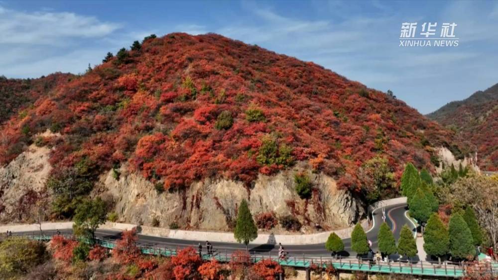 金秋十月,位于河南济源的王屋山世界地质公园漫山红叶如霞似火。