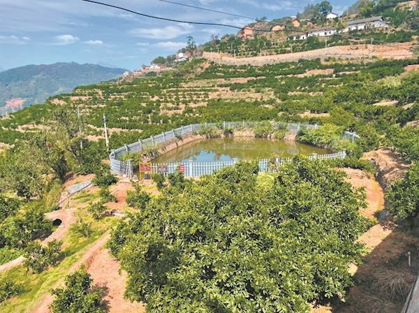 兴山县金乐村,一个个整修后的塘堰助力柑橘园保树保果。