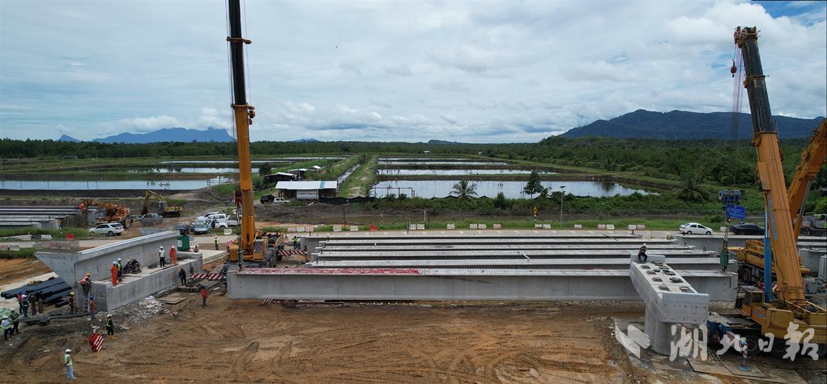 BATANG RAMBUNGAN大桥首片箱梁吊装。