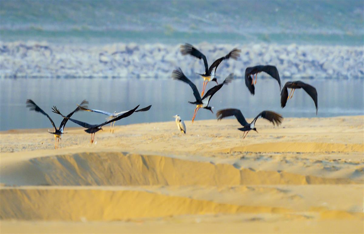 “这片洲滩水草丰美,鱼虾螺蚌众多,鸟类食料极其丰富,是黑鹳生活的天堂。”野保站工作人员介绍,近10年来,每到10月中下旬,黑鹳便来到石首越冬,沿长江岸线分布,最多的一年有120只。