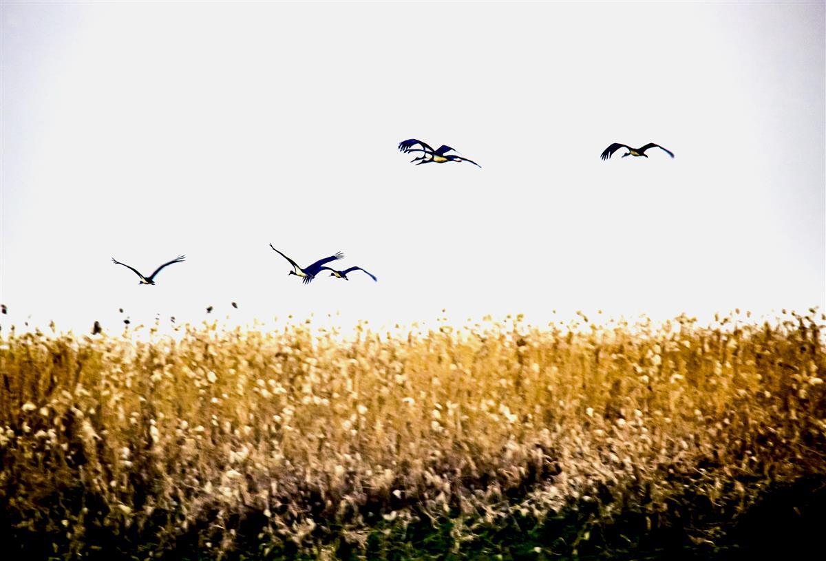 “来了……来了……”10月26日下午5时,石首市南口镇白沙洲至古夹垸长江洲滩,一群黑色大鸟扑腾着翅膀落在芦苇丛里,野保志愿者李吉民屏住呼吸连续按下快门。