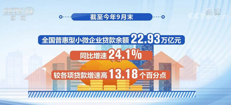 数据显示,截至今年9月末,全国普惠型小微企业贷款余额22.93万亿元,同比增速24.1%,较各项贷款增速高13.18个百分点,有贷款余额的小微企业户数超过3811万户。