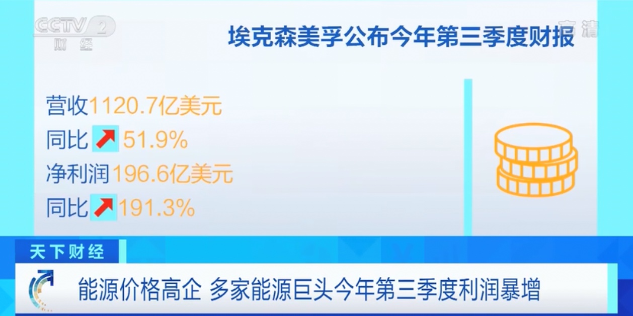 今年以来,全球市场上石油、天然气等能源价格大幅走高,这使得众多跨国能源巨头企业赚得盆满钵满。最新财报显示,美国埃克森美孚、雪佛龙、英荷壳牌等公司今年第三季度获取的利润都远超分析师们的预期。