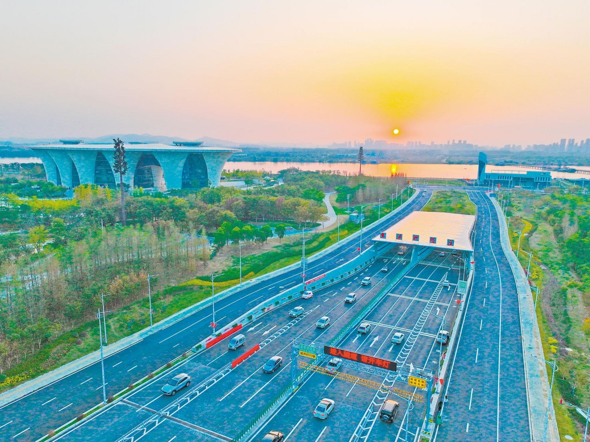 鱼梁洲隧道通车现场。 (湖北日报全媒记者 田悦 通讯员 谢勇 摄)
