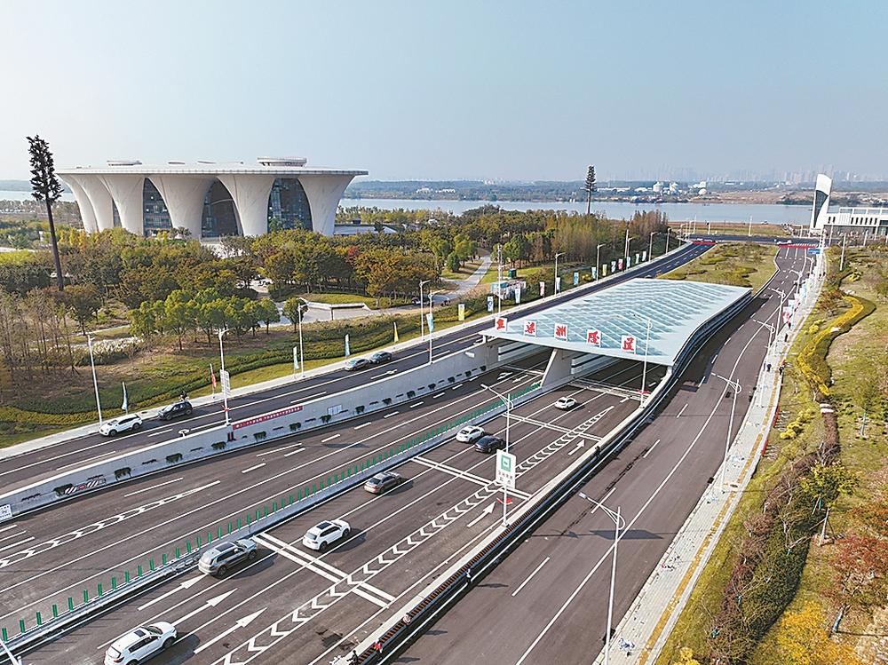 襄江大道鱼梁洲隧道是连接东津新区与樊城区的一条快速通道,起于樊城大庆东路东侧,途经城市“绿心”鱼梁洲,止于东津新区纵四路西侧,全长5.4公里,采用双向六车道城市快速路标准建设,主线设计时速60公里。该项目严格遵循生态保护原则,是千里汉江第一条公路隧道和华中地区首条内河沉管隧道,实现了国内首条沉管隧道建设全产业链国产化,在浇筑、焊接、铺设等七大领域实现国内首创,为内河沉管隧道技术发展提供了重要支撑。