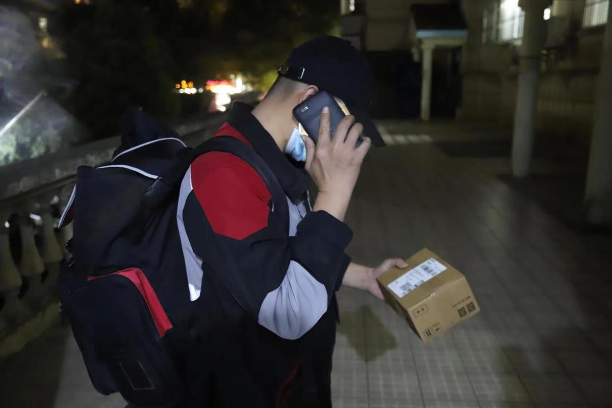 晚上8点,随着成功支付尾款的首笔订单产生,魏隆熟练地根据订单信息,从网点的前置仓内快速分拣出快递包裹,随即出发向收件地址奔赴而去。