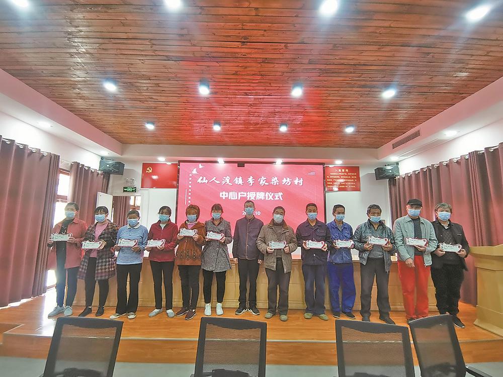 本报讯【通讯员李鹂 刘小辉】为引导激励群众成为“美好环境与幸福生活共同缔造”的参与者、践行者、监督者,构建“纵向到底、横向到边”全覆盖管理服务网格,10月31日,老河口市仙人渡镇李家染坊村推选出24名党员群众“中心户”,并举行授牌仪式。(如图)