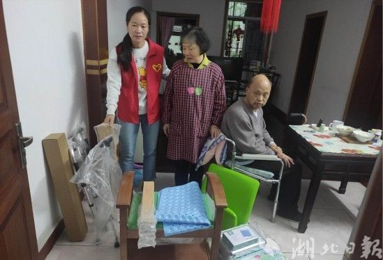家住开元小区的朱秀英、张志强老两口今年70多岁,两个女儿都远嫁江苏,身边无人照应。张志强因糖尿病并发症中风瘫痪,行动不便,不能出门。吕芬得知这一情况,及时和残联工作人员联系,成功帮助老人申请到了轮椅。轮椅送到后,吕芬又详细给老人解说轮椅使用方法。坐在崭新的轮椅上,老人的感激之情无以言表,直说:“太感谢了!感谢大家对我的关心。”