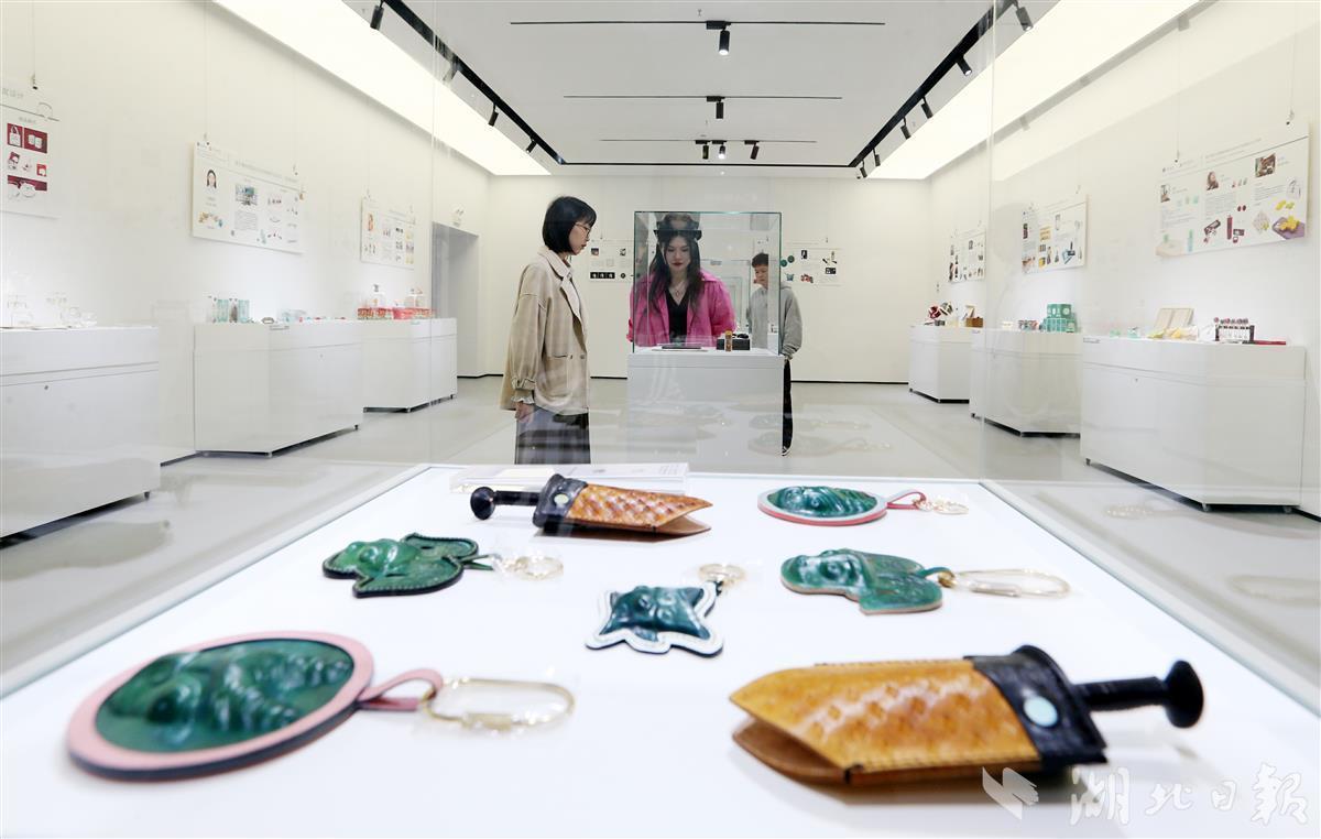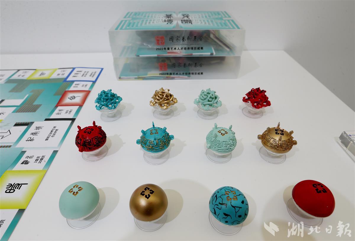 由国家艺术基金管理中心特别主办、中国地质大学(武汉)珠宝学院承办,珠宝学院教授主持的国家艺术基金2022年度艺术人才培养资助项目“基于荆楚文化青铜器和绿松石的文创产品创意设计人才培养”结项成果汇报展在中国地质大学(武汉)珠宝学院艺术馆开展。本项目先后以集中授课、交流采风、艺术创作实践等形式,全面提升了学员的创作能力、审美能力、研究能力与创新能力。成果汇展集合了25名学员共计600件作品,包括IP形象、首饰、生活用品、文具等不同类型的文化创意产品,产品融合了新时代的数字技术、创新工艺及创作理念,以特征鲜明的优秀荆楚文化为核心进行当代文创产品设计,全面展现荆楚文化的审美特质。也通过文创产品传承优秀荆楚文化的当代价值观,向世界展示优秀的荆楚文化品质。(湖北日报全媒记者 张鸿 通讯员 张荣红 谢 媛 摄)