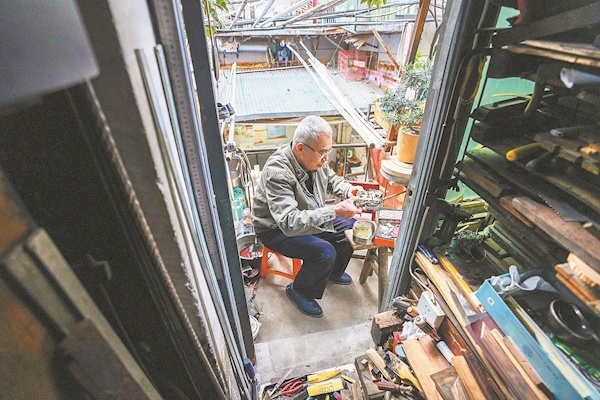 一张老旧的木质马凳便是工作台,每天曹庆吉就在这里,伴着钟声,修理从各处收集来的古董钟,让它们重新歌唱。