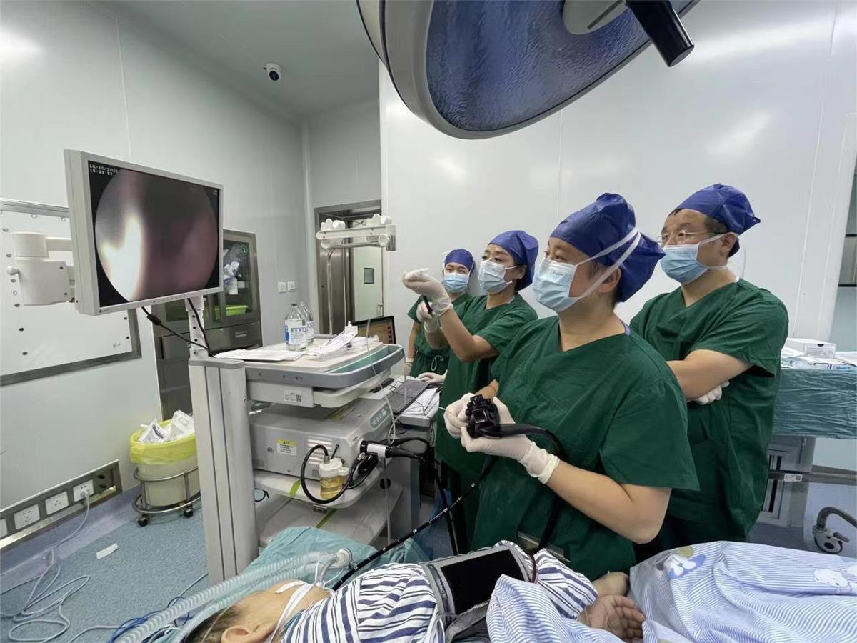 快速评估病情后,消化内科一病区主任医师梅红团队认为手术治疗已经刻不容缓,决定立即急诊止血。麻醉医师、内镜中心团队也迅速到位。消化内科一病区副主任医师王宝香和内镜中心护士长徐平平紧密配合,进镜后,发现小勇胃内有大约1000ml暗红色血液和食物残渣,镜下视野不清,寻找出血点极其困难。反复进行胃镜冲洗、抽吸后,见胃底近贲门处有大量鲜血正快速渗出。王宝香娴熟地操作胃镜手柄,精准快速地将硬化剂、组织胶、生理盐水逐一注入,将出血点堵住,随后,一并对食管静脉曲张行套扎治疗。术后止血效果立竿见影,小勇血压稳定下来,被转入重症监护室。