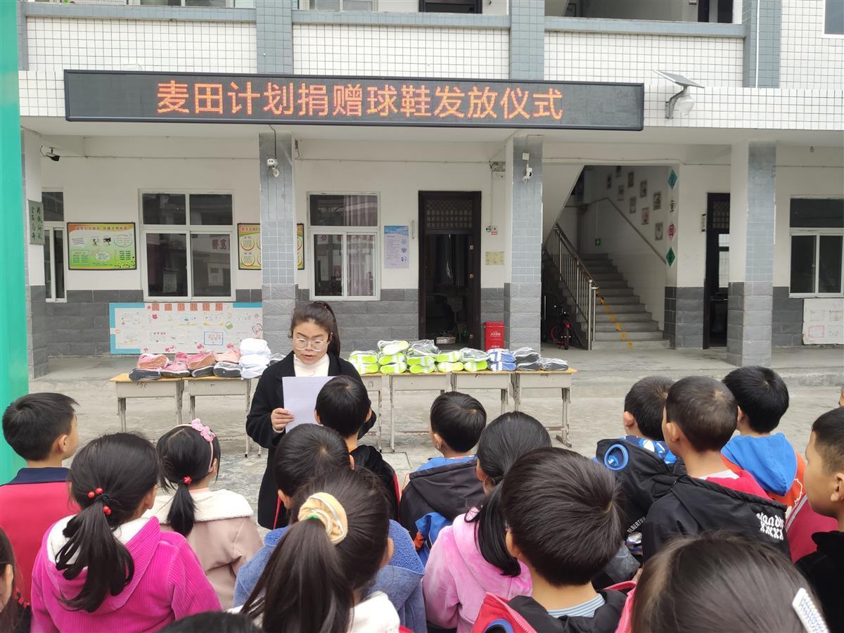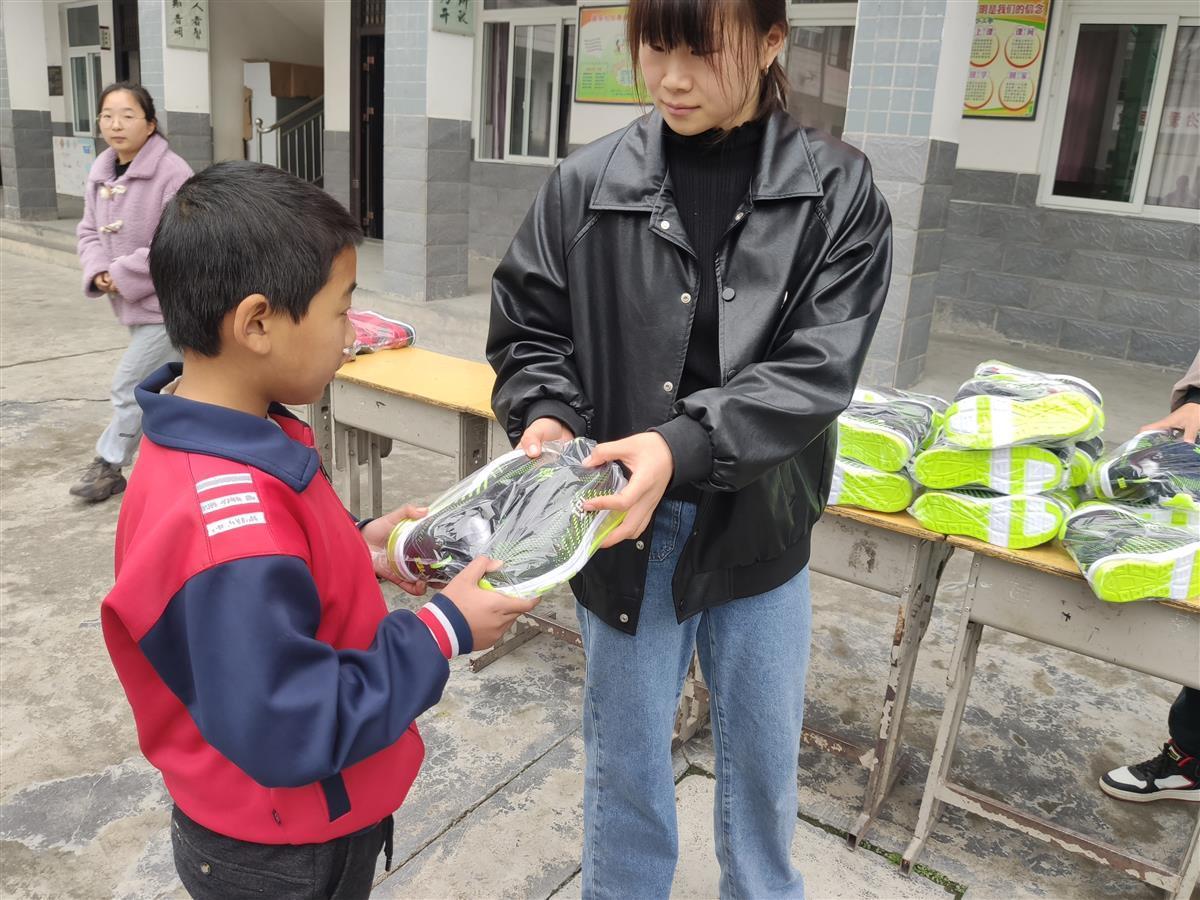 得胜镇复兴小学是一所偏远农村小规模寄宿制学校,家庭经济困难学生占大多数,共有31名。学校收到球鞋后,立刻组织教师将一双双新鞋发到学生手里。收到鞋子后孩子们十分兴奋,纯真的脸庞绽放出灿烂的笑容。