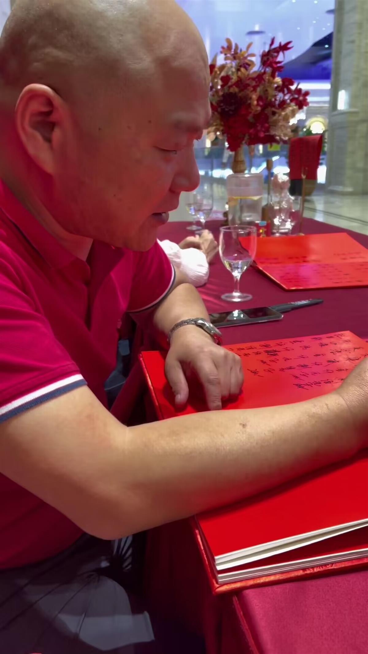 刘先生在婚礼现场签到(图片来源:极目新闻)
