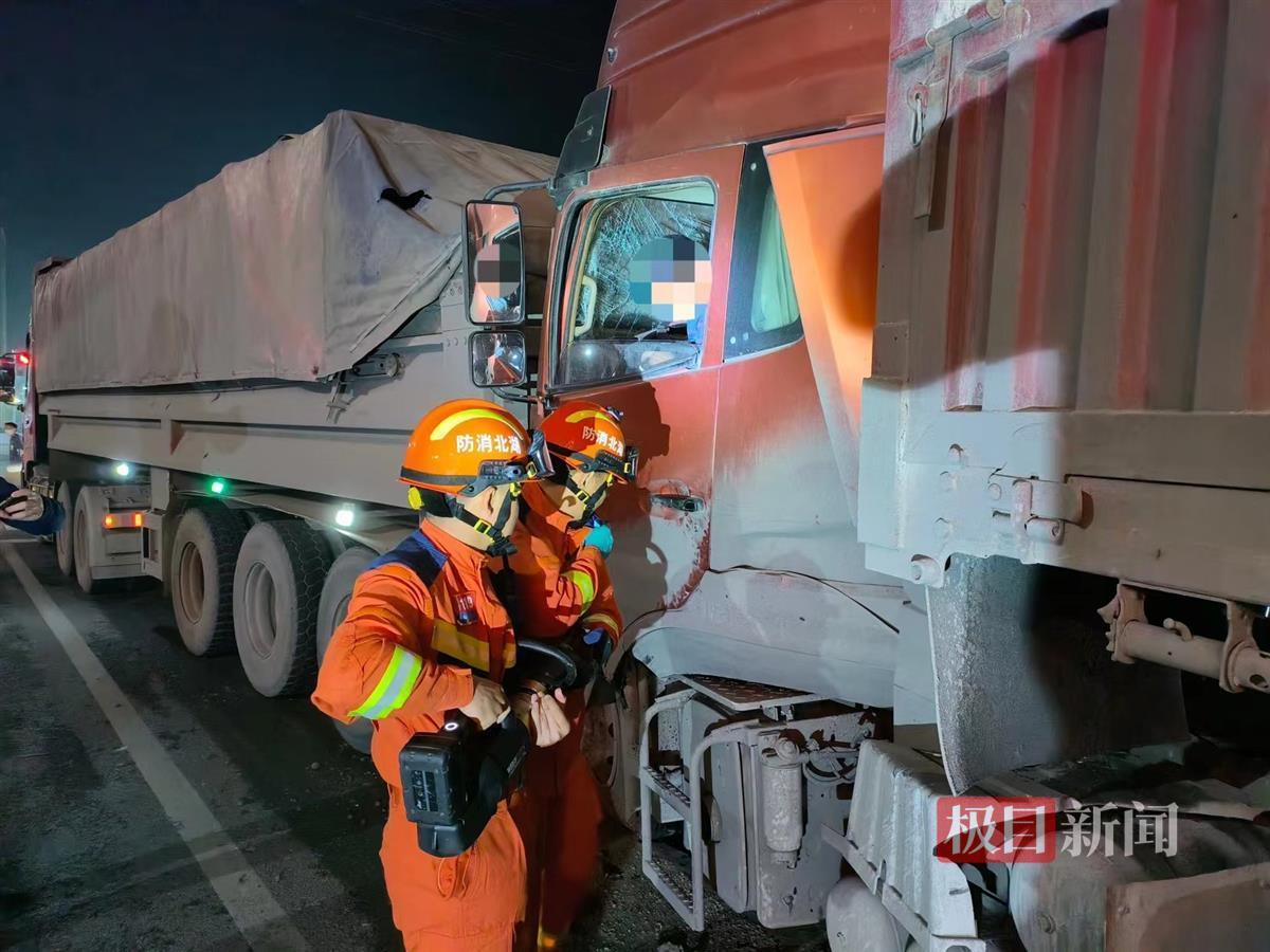 11月5日21时24分,湖北襄阳南漳县水镜大道消防救援站接警称,水镜大道与金漳大道交接处发生一起车祸,两辆货车追尾,一名货车驾驶员被困。随后,消防救援站立即出动2辆消防车14名消防救援人员赶赴现场实施救援。