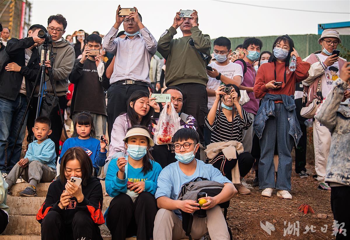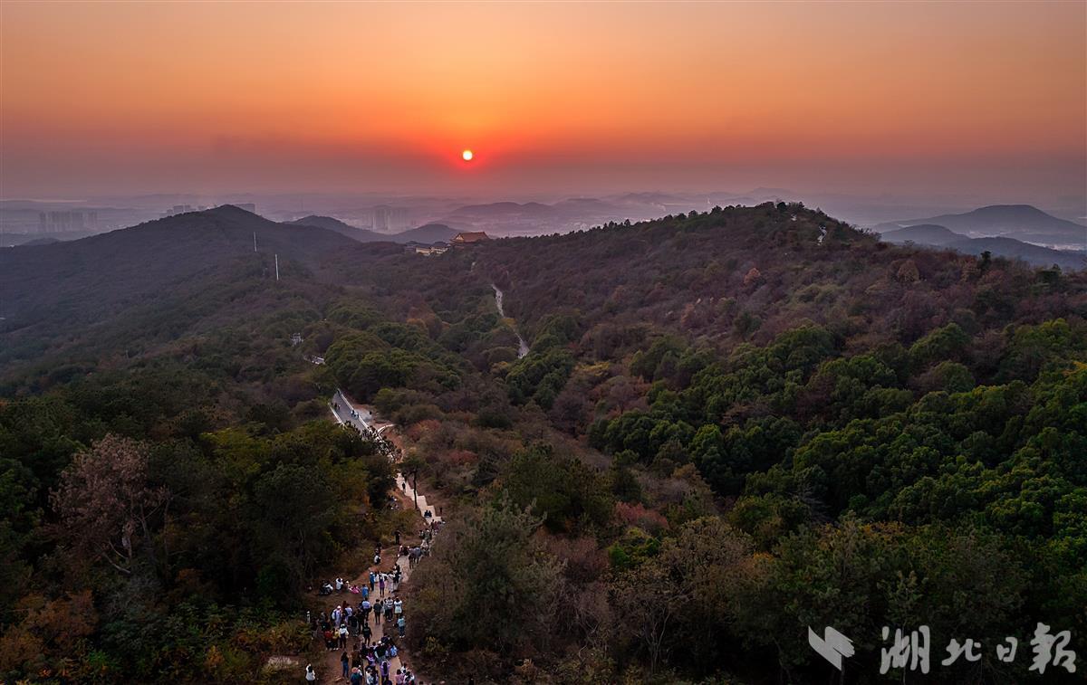 深秋时节,落日余晖中的八分山美不胜收。11月6日,夕阳西下,许多市民游客登顶八分山,在建设中的武汉新一代气象雷达旁边观赏美丽的日落。八分山位于武汉市江夏区纸坊城区附近,海拔近300米。随着上山公路、休闲步道和观景台的修建,周末闲暇时,不少市民游客来到这里徒步、观鸟、露营、赏日出日落,成为武汉景点的“新网红”。(湖北日报全媒记者 朱熙勇 摄)