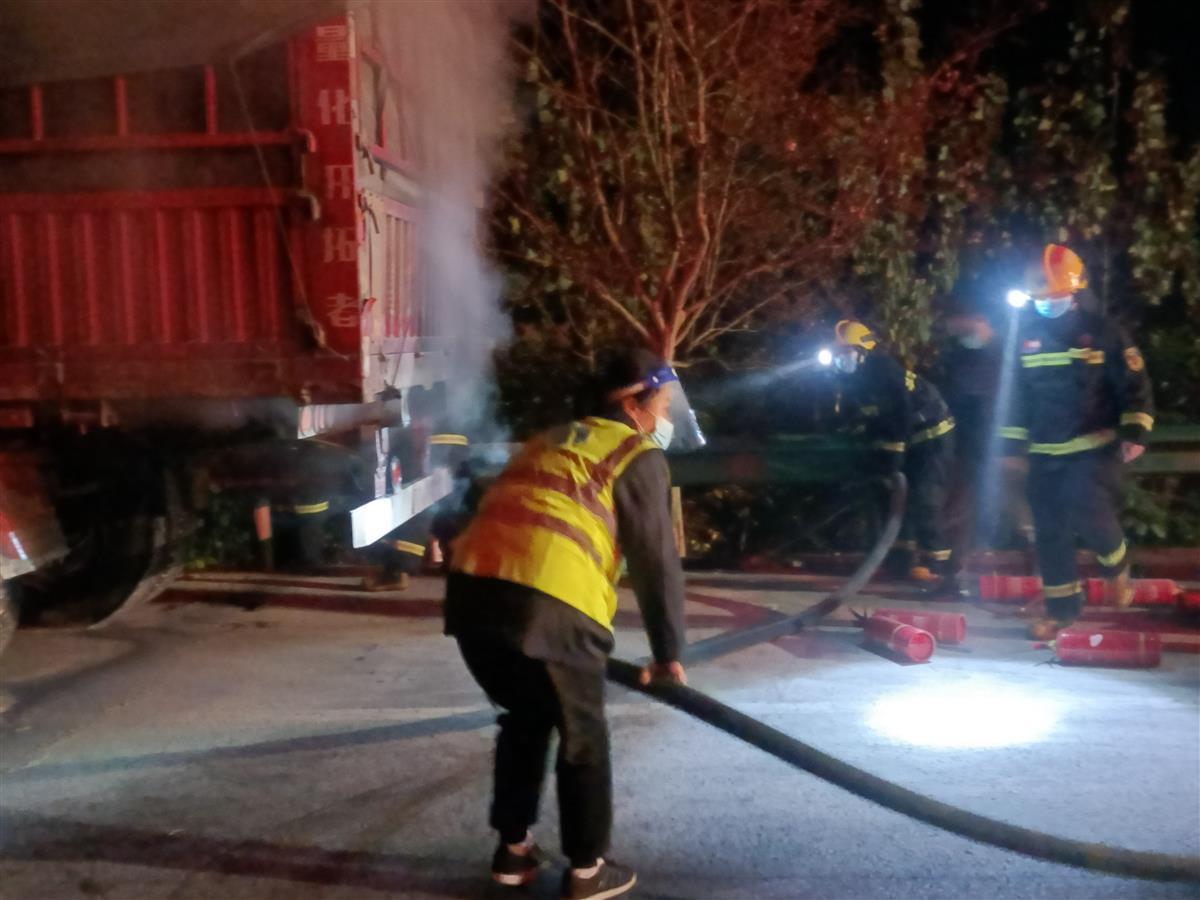 “我们也是第一次遇到这种情况。我们从陕西运煤炭准备到安陆,错把安居当成了安陆,下错了站口。还好下错了,如果在高速公路行进过程中出现了轮胎自燃,那我这一车的货可就损失大了。应该好好谢谢他们!”司机高师傅的脸上满是感激。
