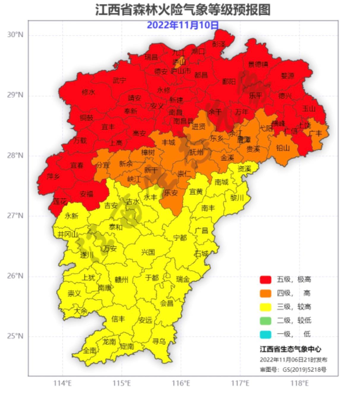 这次降水过程后,赣中、赣南地区已有44个县(市、区)的森林火险气象等级已降至较低或低风险,但赣北、赣西大部分地区高森林火险气象等级仍然维持。由于降水影响,全省大部分城市空气质量指数总体上呈显著下降趋势,大气污染雨洗效果明显。据气候预测,11月江西维持暖干气候趋势,气象干旱仍将持续,森林防火和抗旱救灾形势依然严峻。