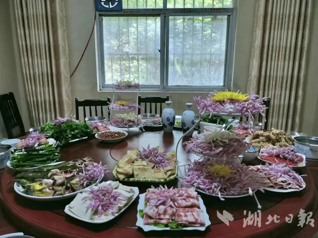 而在该区南部山区另一边的茅塔乡大坪村,食用菊花基地的菊花进入盛开季节,吸引城区众多市民带着孩子来打卡、拍照、体验观赏、采摘品尝菊花宴,现场呈现出一派农旅融合的新景象。