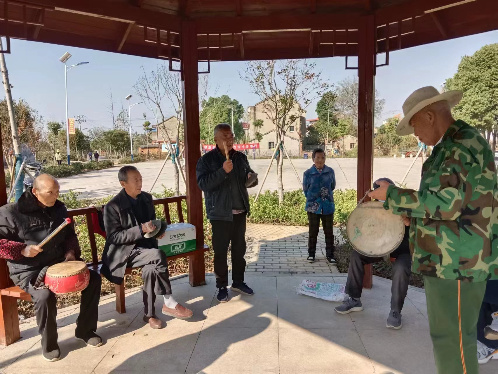 湖北日报客户端讯(应城频道通讯员陈天蕾)11月6日,在应城市天鹅镇江河村老年大学学习点的凉亭内,传出阵阵优美的歌声,几名爱好音乐的老人们正聚在一起,敲锣打鼓、引吭高歌......村民们都说,感谢村里为我们提供了这样的场所和机会,让我们老年人也能够在闲暇之余聚在一起放松娱乐。