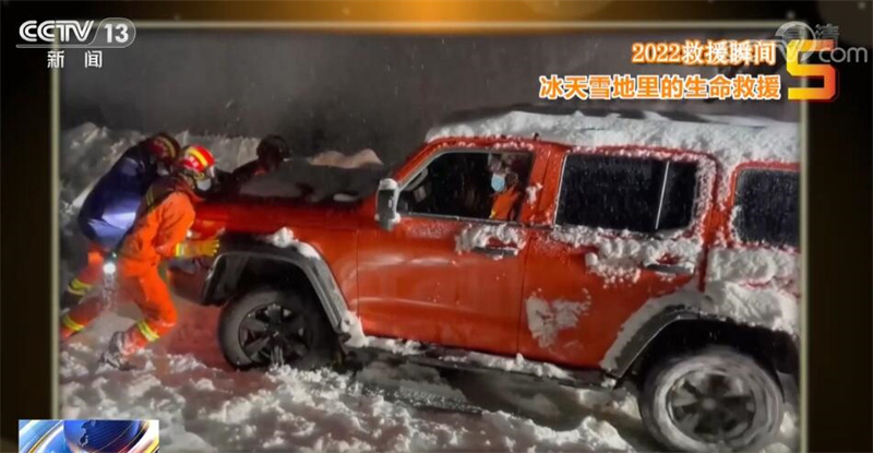 在这风雪交加令人胆寒的夜晚,唯有这回荡在山间的口号铿锵有力。最终,大家合力将被困汽车从雪堆里推了出来。