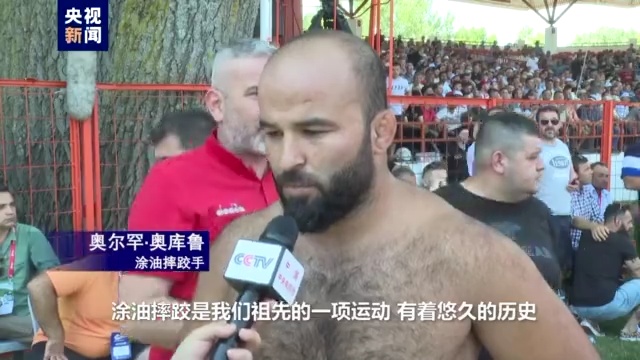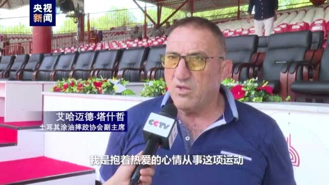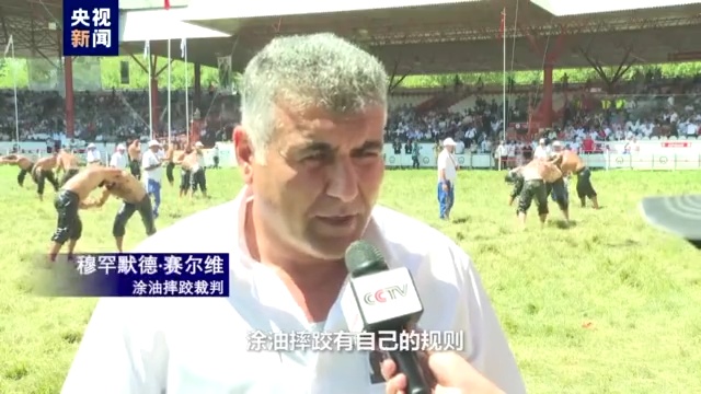 土耳其涂油摔跤协会副主席 艾哈迈德·塔什哲 :我是抱着热爱的心情从事这项运动,涂油摔跤对我来说意味着道德、传统、正直、文化、习俗。这项运动包含所有这些品质,是非常好的一项运动,尽管我在赛场上历经艰难才赢得金腰带,但我还是把它们作为礼物送给了那些为比赛服务的人。