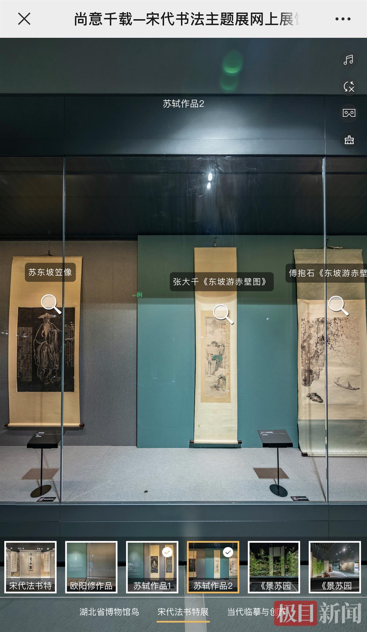 “尚意千载——宋代书法主题展”于今年9月末亮相湖北省博物馆,目前其全景虚拟展厅在湖北省博物馆官方微信平台展出。极目新闻记者留意到,展厅里除了难得一见的宋代书法真迹,另展有珍贵的苏轼画像,吸引众多网友目光。