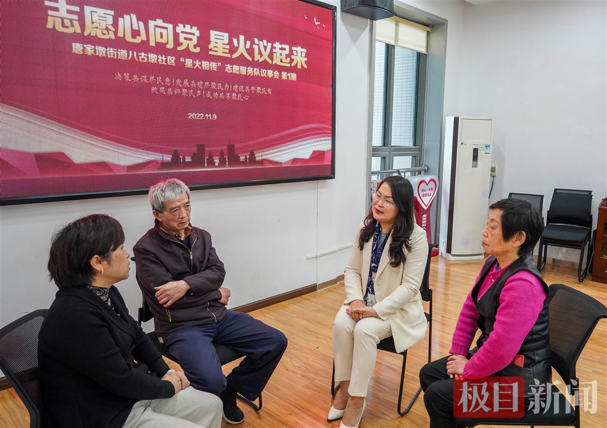 陈玥(右二)在社区与志愿者交流