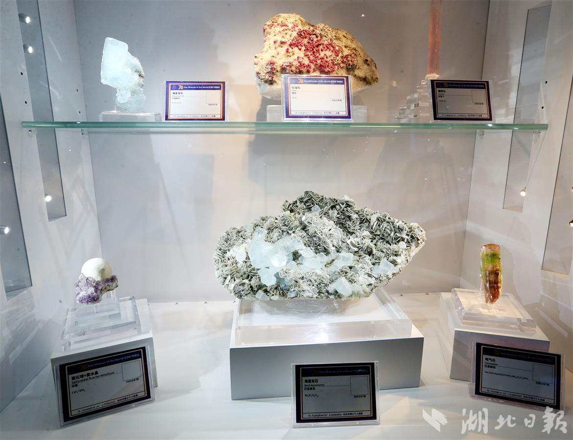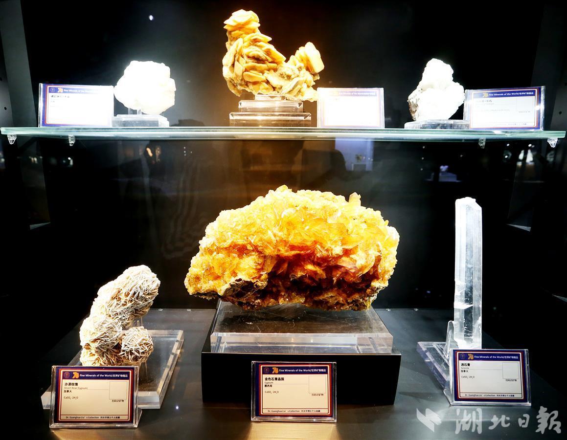世界矿物精品展在中国地质大学(武汉)逸夫博物馆开展,来自巴基斯坦、孟加拉、缅甸、土耳其、瑞士、匈牙利、奥地利、墨西哥、巴西、坦桑尼亚、新西兰等54个国家的著名矿山或矿点的310件珍贵矿物精彩亮相。