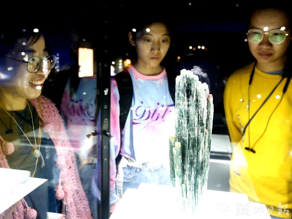 11月10日,学生们饶有兴致地在中国地质大学(武汉)逸夫博物馆参观世界矿物精品。