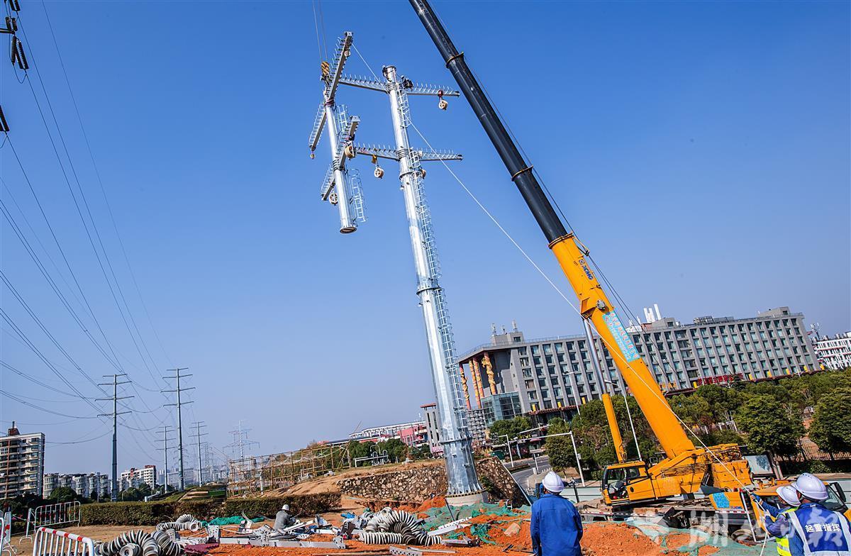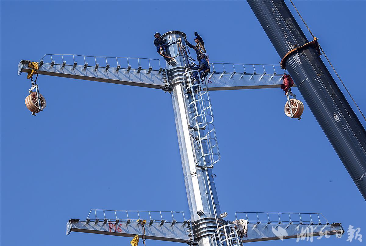据现场施工的华源电力输变电有限公司的负责人介绍,这座供电塔高52.2米,重31.695吨,是220KV凤关一二回老旧线路改造工程的组成部分。该工程是对藏龙大道沿线10多公里凤关一二回路的旧塔,旧线,旧附件拆除换新,新建高压供电塔34座。