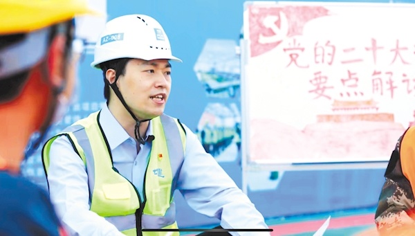 10月31日下午,党的二十大代表,中国建筑三局总承包安装分公司团委书记、电气工程师肖帅来到武汉市中心医院杨春湖院区项目建设现场,宣讲党的二十大精神。