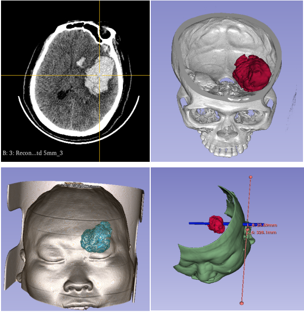 3D-slicer是适合多种操作系统的开源软件,通过将人工智能软件与现代医学相结合,为疾病的治疗提供了新的思路,术前较短时间内即可完成重建,对血肿可以进行自由分割和融合,重建图像可作为手术入路选择的依据,真正地实现精准外科手术。